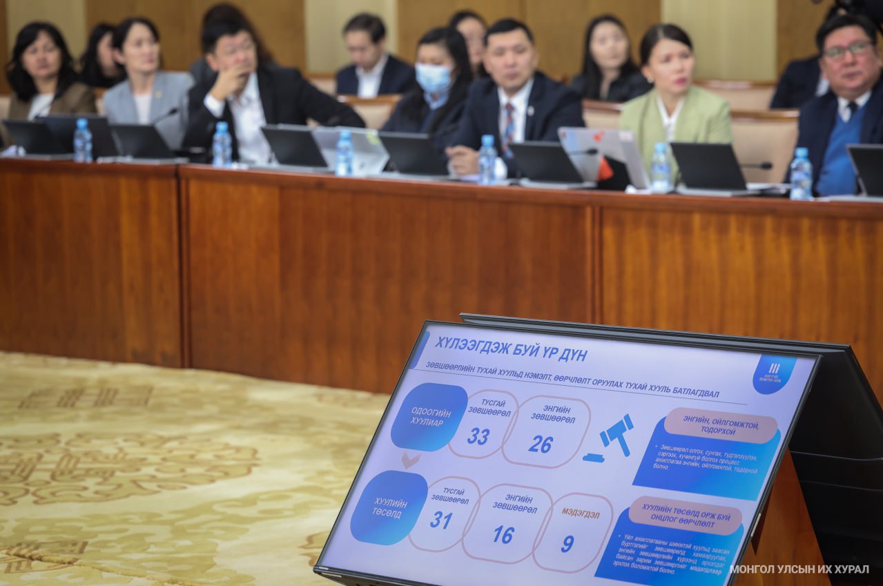 Тэрбээр, Улсын Их Хурал иргэн, аж ахуйн нэгжид учирдаг хүндрэл дарамтыг багасгаж, бизнес эрхлэгчдэд таатай орчин бүрдүүлэх, төрөөс олгодог зөвшөөрлийн тоог багасгаж, зөвшөөрөл олгох үе шатыг илүү хялбар, хүртээмжтэй болгох замаар бизнес эрхлэгч, аж ахуй нэгжүүдээ дэмжих, зөвшөөрөл олгохтой холбогдуулан үүсдэг авлига, хээл хахууль, төрийн албаны хүнд суртлыг багасгах, арилгах зорилгоор Зөвшөөрлийн тухай хуулийн шинэчилсэн найруулгыг Улсын Их Хурлын 2024 оны хаврын чуулганаар хэлэлцэн баталсан.